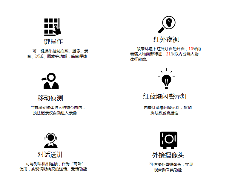 w66国际生态DSJ-200F 执法仪(法院/政府/城管)拍摄像素高达5000万,广角镜头137,拍摄画面精细而全面,大容量电池支持陆续在工作12小时不断电